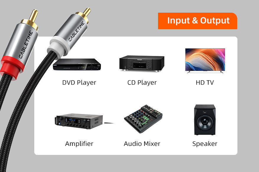 2RCA to 2RCA Stereo Audio Cable Male to Male for Home Theater Amplifier Hi-Fi System Car Audio Speaker