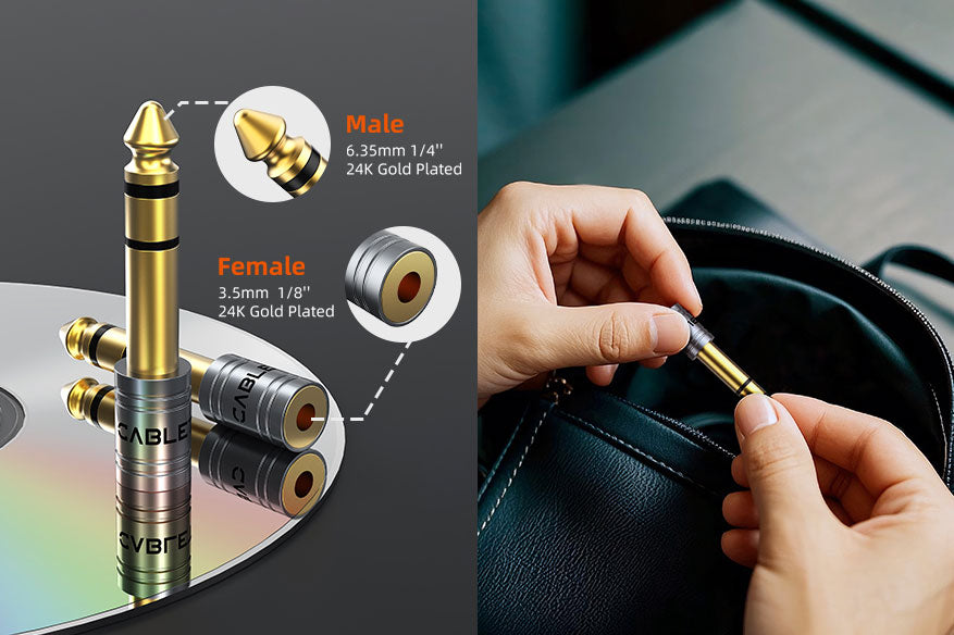 6.35mm 1/4 Male to 3.5mm 1/8 Female Stereo Audio Headphone Adapter