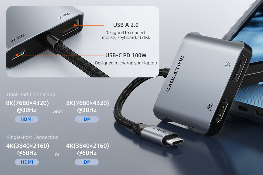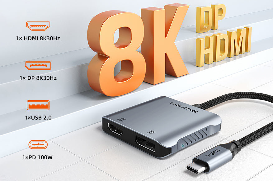 8K USB C To HDMI DP Adapter Dual 4K