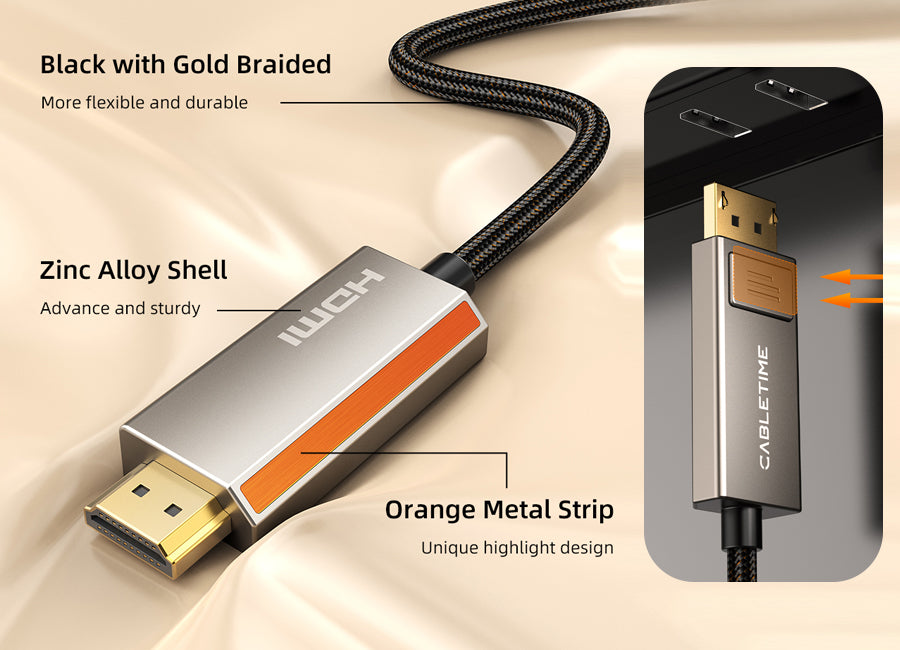 Uni-directional 8K 60Hz Displayport 1.4 to HDMI 2.1 Cable 4K 120Hz