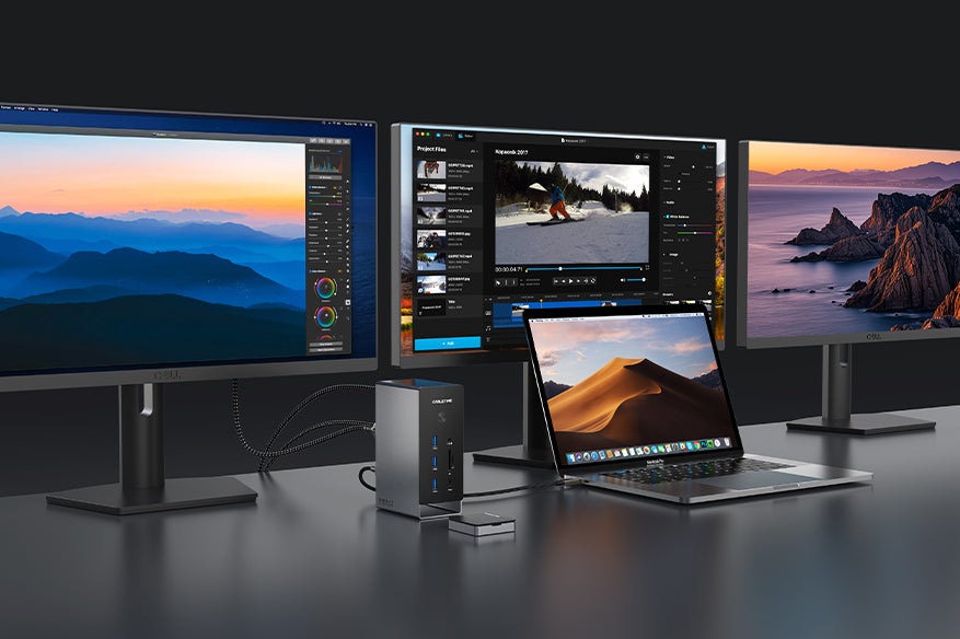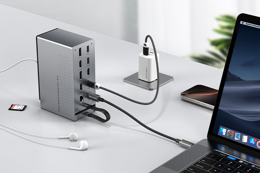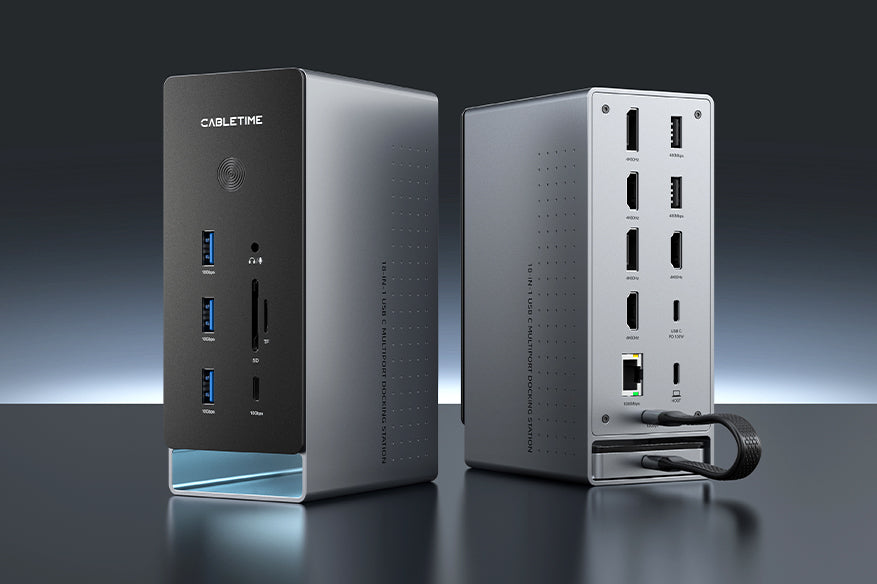 Boost your workspace with the CABLETIME 18-IN-1 USB-C Docking Station, offering three-display support via DisplayLink technology for both macOS and Windows. With a detachable SSD storage case and a premium aluminum design, it’s the ultimate all-in-one docking solution for seamless multitasking