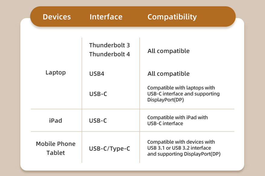 Note: Please note that the USB-C to DP 1.4 Cable's resolution capabilities, which include support for up to 8K at 60Hz, require the connected device to have the hardware specifications listed below: