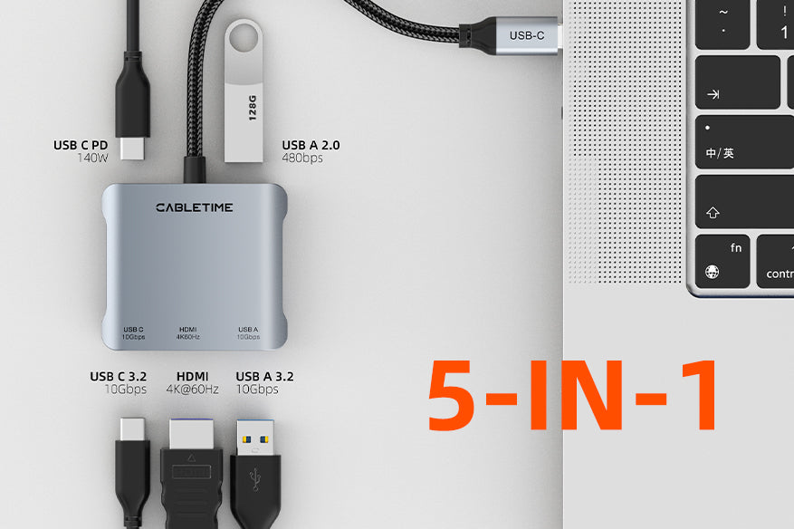 10 Gbps 5 en 1 USB C Hub con HDMI 4K 60Hz 140W Entrega de energía