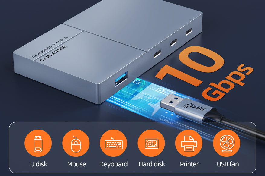 Sortir | 1×USB-A 3.1 10 Gbit/s, 3×Thunderbolt 4 40 Gbit/s, 1 alimentation CC 20 V/5,5 A |