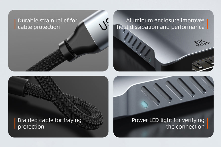 USB C : Ordinateur portable, ordinateur de bureau, téléphone, tabletteAdaptateur HDMI : Moniteur, téléviseur UHD, projecteur