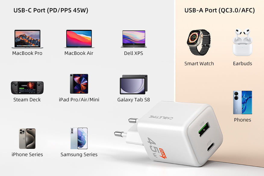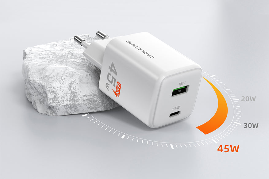 45W USB C Charger Dual Gan USB C dan USB A Wall Charger