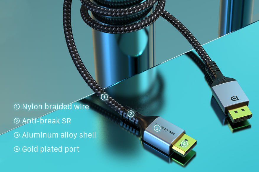 Mendukung 8K@60HzBahasa Indonesia: 4K@120Hz and hingga resolusi 10K, UHD, HDR, memberikan pengalaman transmisi video Ultra HD dan efek visual 3D1.4 dengan transmisi audio dan video secara bersamaan. Kabel DisplayPort 1.4 CABLETIME juga kompatibel dengan DisplayPort 1.3/1.2/1.1.
