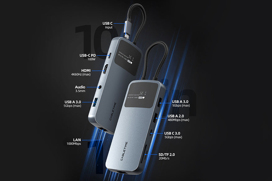 10 IN 1 USB C Hub Multiport Adapter with 4K60Hz HDMI Ethernet