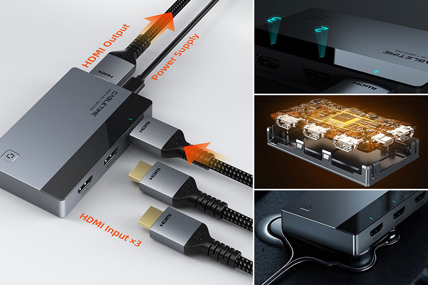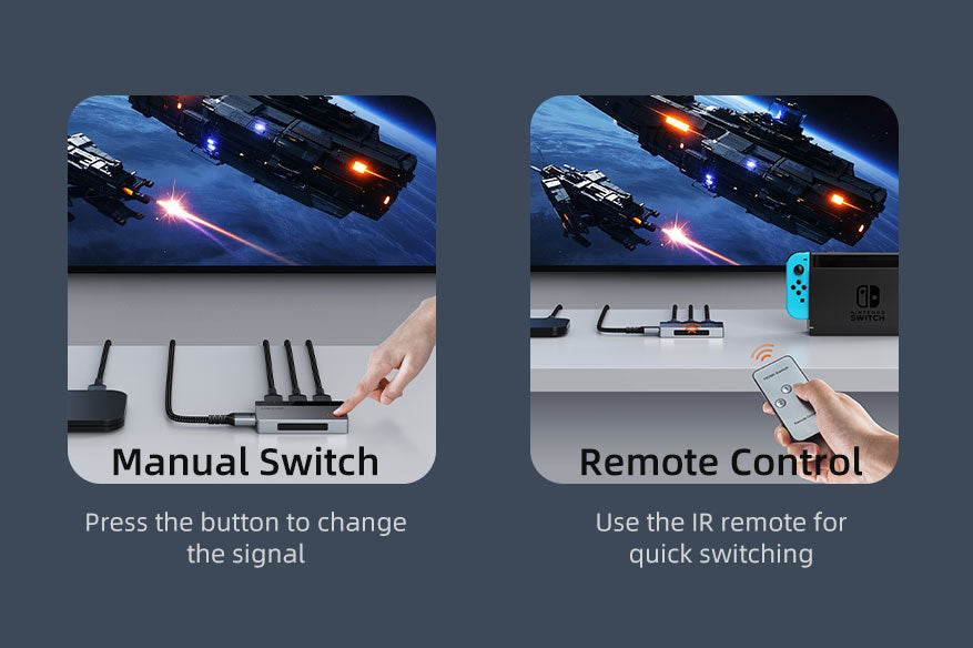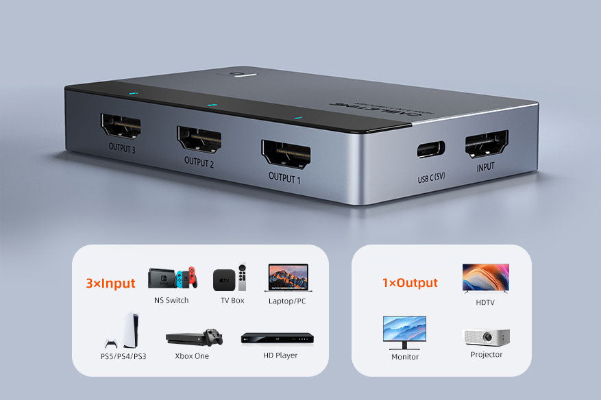 3-Port HDMI Switcher 4K 60Hz with Remote Control Manual for PS5 PS4 Xbox Fire Stick Roku Apple TV PC