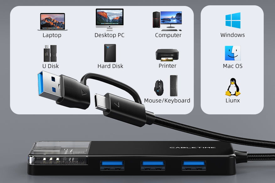 USB type C to 4 port USB 3.0 Hub 5Gbps for Mac with Type C to USB Adapter