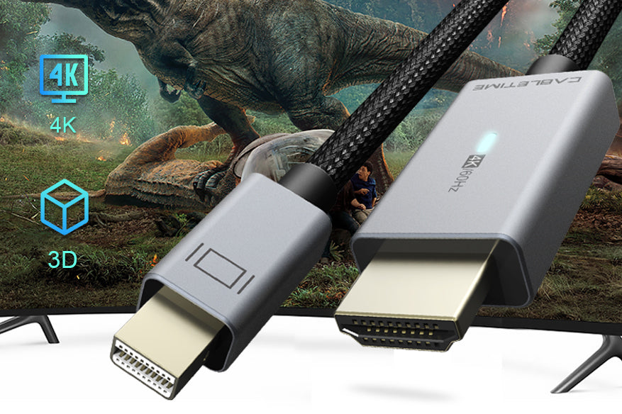 CABLETIME mini displaypor to hdmi cable cable supports a maximum resolution of 4K 30Hz, delivering sharp, vibrant images that take your viewing experience to the next level. Whether you're watching movies, playing games, or giving a presentation, our cable delivers the ultimate visual experience.