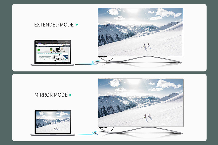 Our Mini DP to HDMI cable gives you the option to choose between extend and mirror mode to suit your needs. Mirror mode allows you to duplicate your laptop or desktop screen onto a larger display, while extend mode gives you more screen real estate to work with.