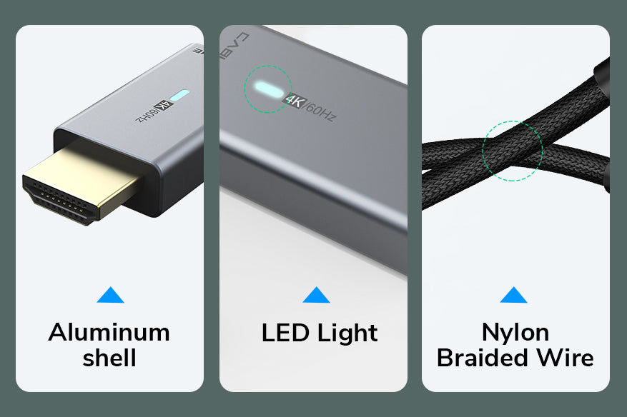 Our cable features a durable aluminum alloy jacket and 24K gold-plated connectors for a stable connection and high-quality video and audio. The nylon braided jacket provides extra protection and durability, while the LED indicator light confirms when the cable is properly connected. Plus, it's plug-and-play, so no software or drivers are required.