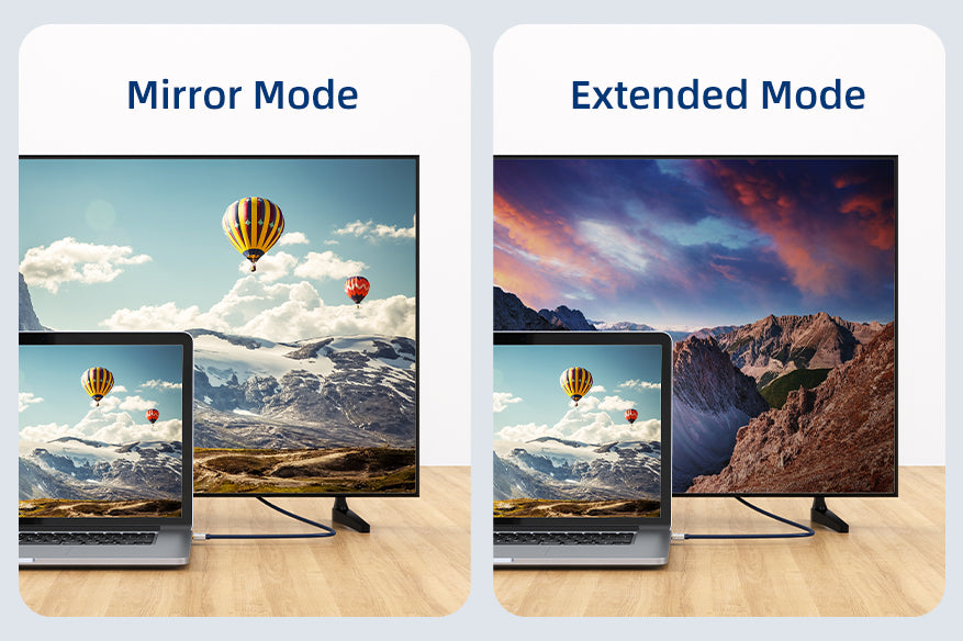 2.0 hdmi cord support mirror and extended mode. Connect to a large screen to improve work efficiency. Mirror Mode: Connect your laptop to TV or projector with HDMI cord, you can enjoy film on the TV with the same content displayed on your laptop. Extended Mode: Support screen splitting operation, work and play can be done at the same time.