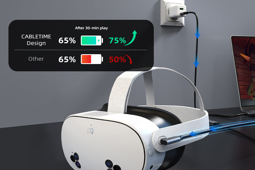 Cabo de link USB C para USB C VR 16ft com carregamento de 36W - compatível com meta missão 3s/3/2/pro, Oculus Quest, Pico 4, PC VR, Steam VR