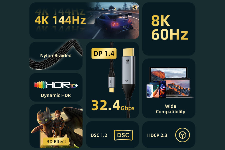 USB C to Displayport 1.4 Кабель 8K 60 Гц 4K 144 Гц