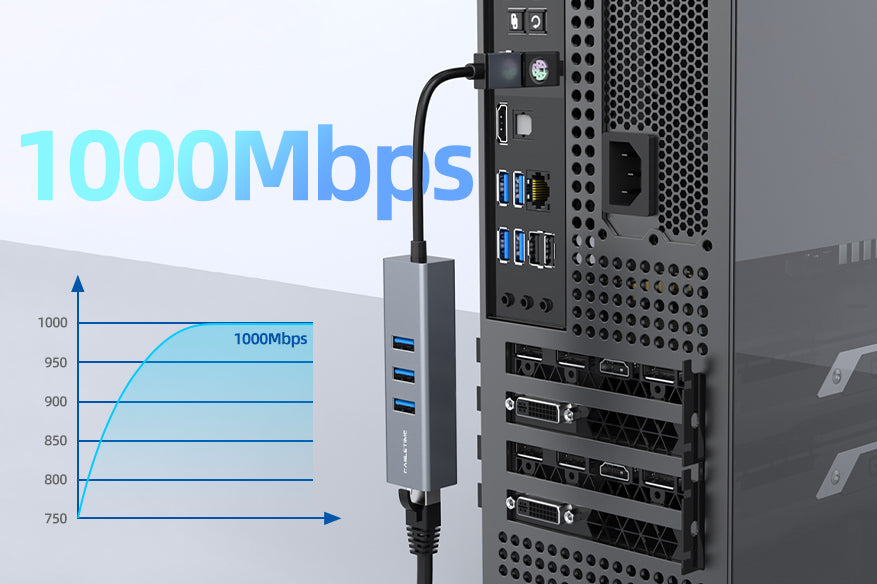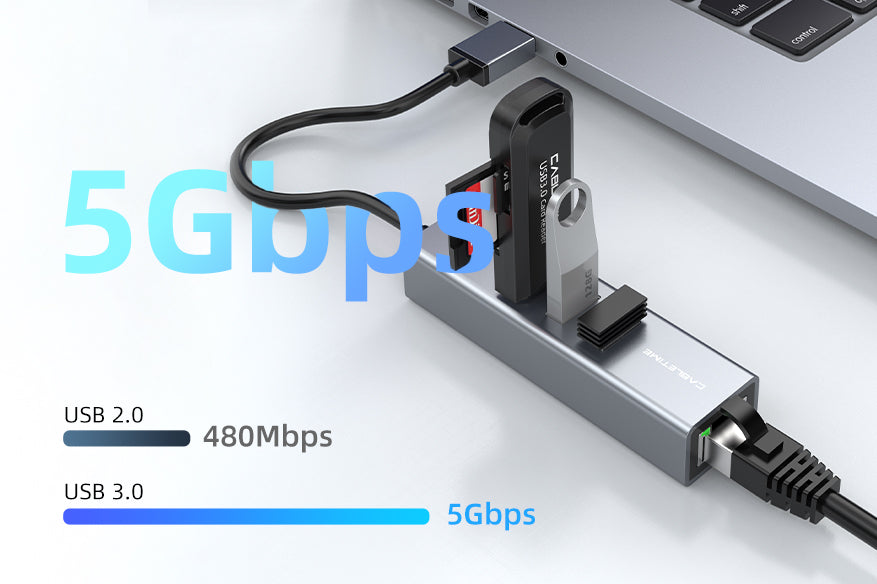 USB 3.0 3 พอร์ตฮับพร้อมอะแดปเตอร์ Gigabit Ethernet